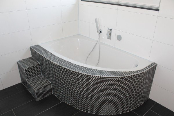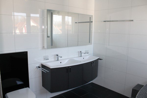 - Badezimmer mit Badewanne, Doppelwaschtisch und WC